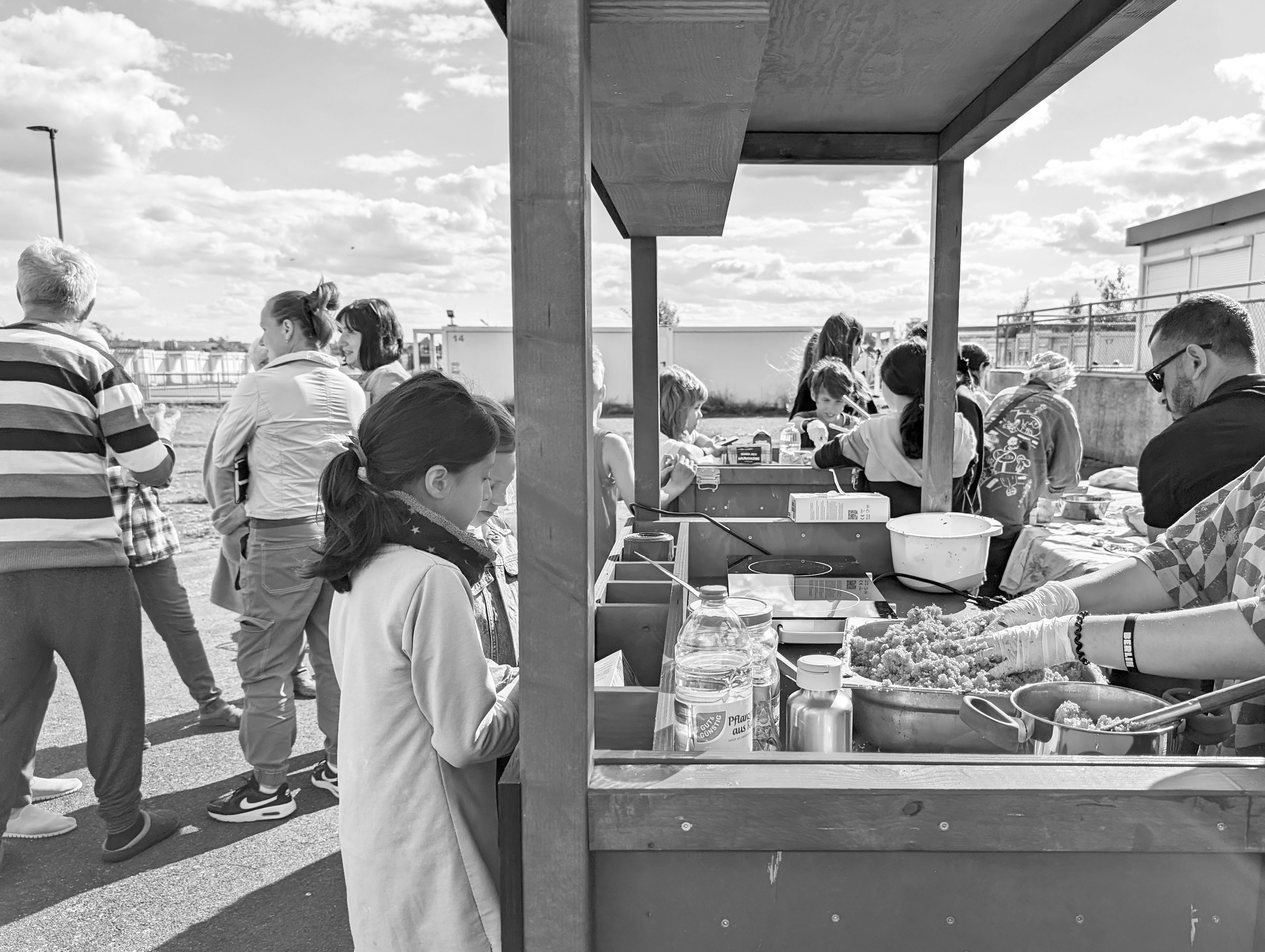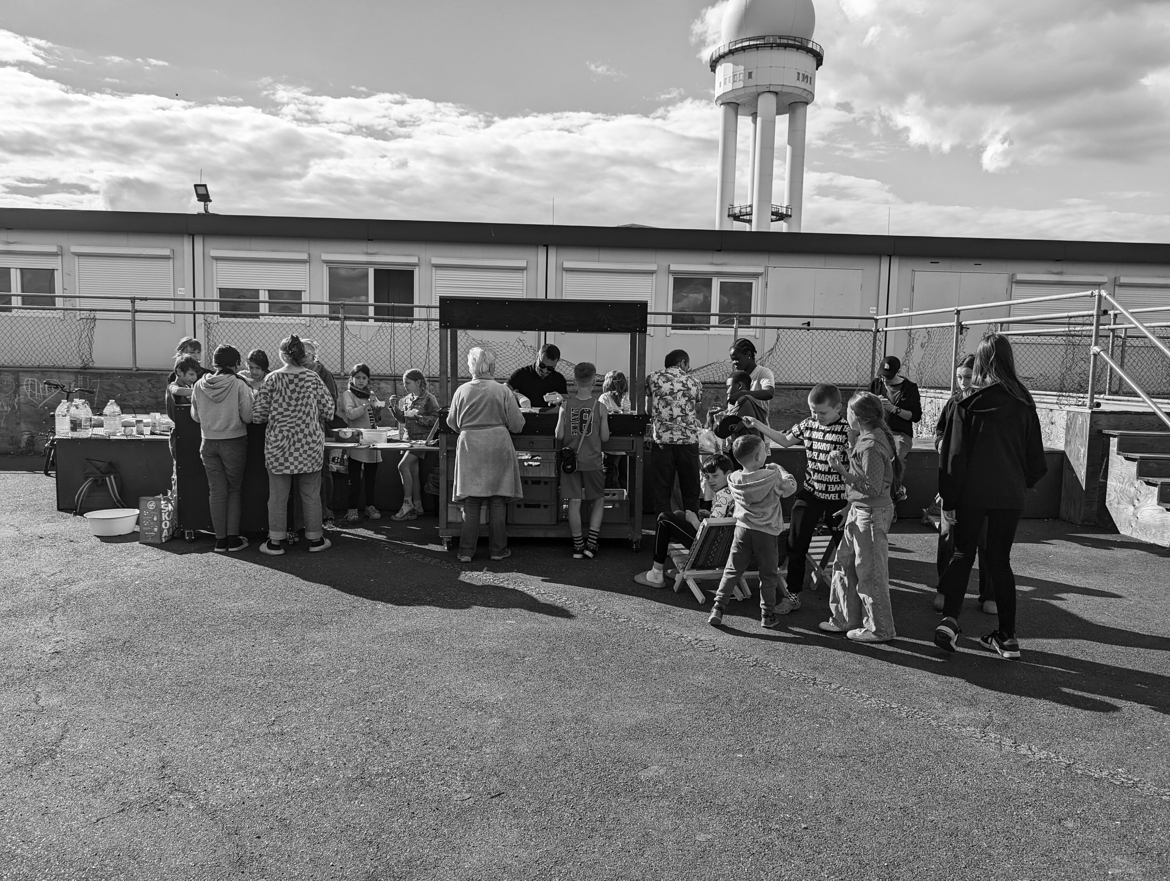 During this initial phase, we began meetings by cooking together. Cooking and eating together turned into a universal language that didn’t require a lot of words to bring people together — no matter where they came from, what language they spoke or how old they were. Initially, it was primarily children who participated, but gradually, adults also joined in. Some assisted with the cooking, while others came to eat or share their stories. In this way, the station evolved into a gathering place where participants could encounter community and strengthen relationships.